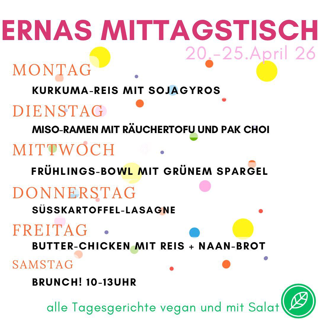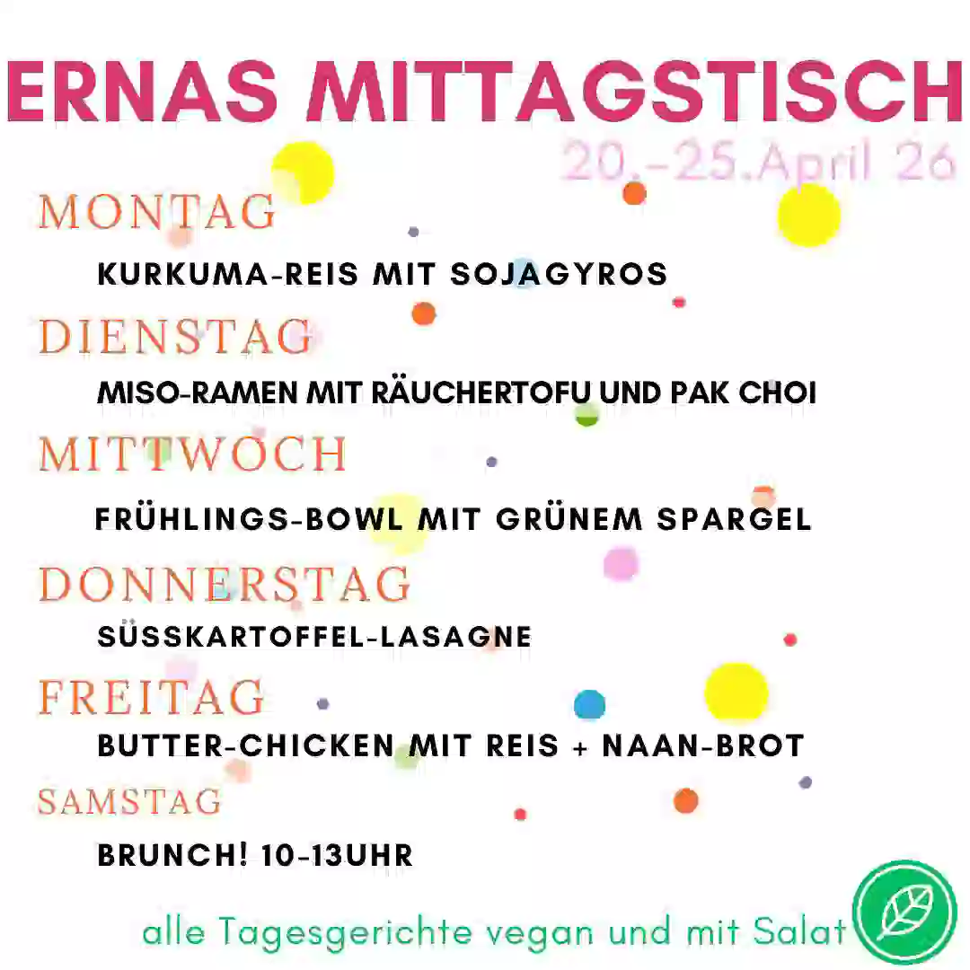 ERNAs LebensMittelPunkt ist dein Bio-Laden, Unverpacktladen und veganes Bistro in Magdeburg Stadtfeld. Bei uns findest du biologische, regionale und fair gehandelte Lebensmittel – viele davon unverpackt. Unser Bistro bietet täglich wechselnde vegane und vegetarische Mittagsgerichte, hausgemachte Kuchen und Kaffeespezialitäten.